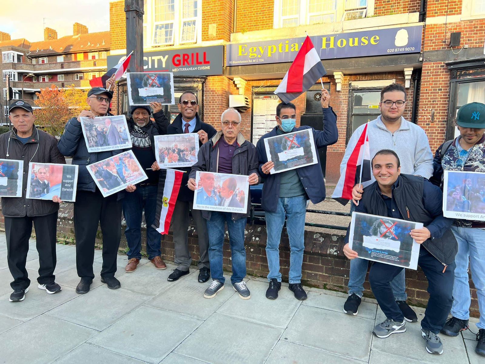 نظم عدد من الجالية المصرية المقيمين، في لندن وقفة احتجاجية سلمية، للتضامن مع النائب المصري عمرو درويش، بعدما حدث معه أمس باحد الجلسات التي نظمت على هامش مؤتمر المناخ، ومنعه من التعبير عن رأيه من قبل المنظمين للجلسة، وسناء سيف عبدالفتاح شقيقة علاء عبدالفتاح.