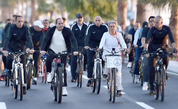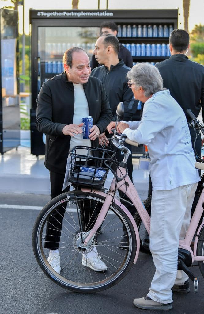 التقى الرئيس عبد الفتاح السيسي صباح اليوم الخميس، أثناء جولته التفقدية بالدراجة فى شرم الشيخ بسيدة سويدية ناشطة فى مجال المناخ، حضرت من السويد لتقطع مسافة 7 آلاف كم بواسطة الدراجة الهوائية فى رحلة استمرت 4 شهور للمشاركة فى مؤتمر شرم الشيخ، صرح بذلك السفير بسام راضى، المتحدث الرسمى باسم رئاسة الجمهورية.