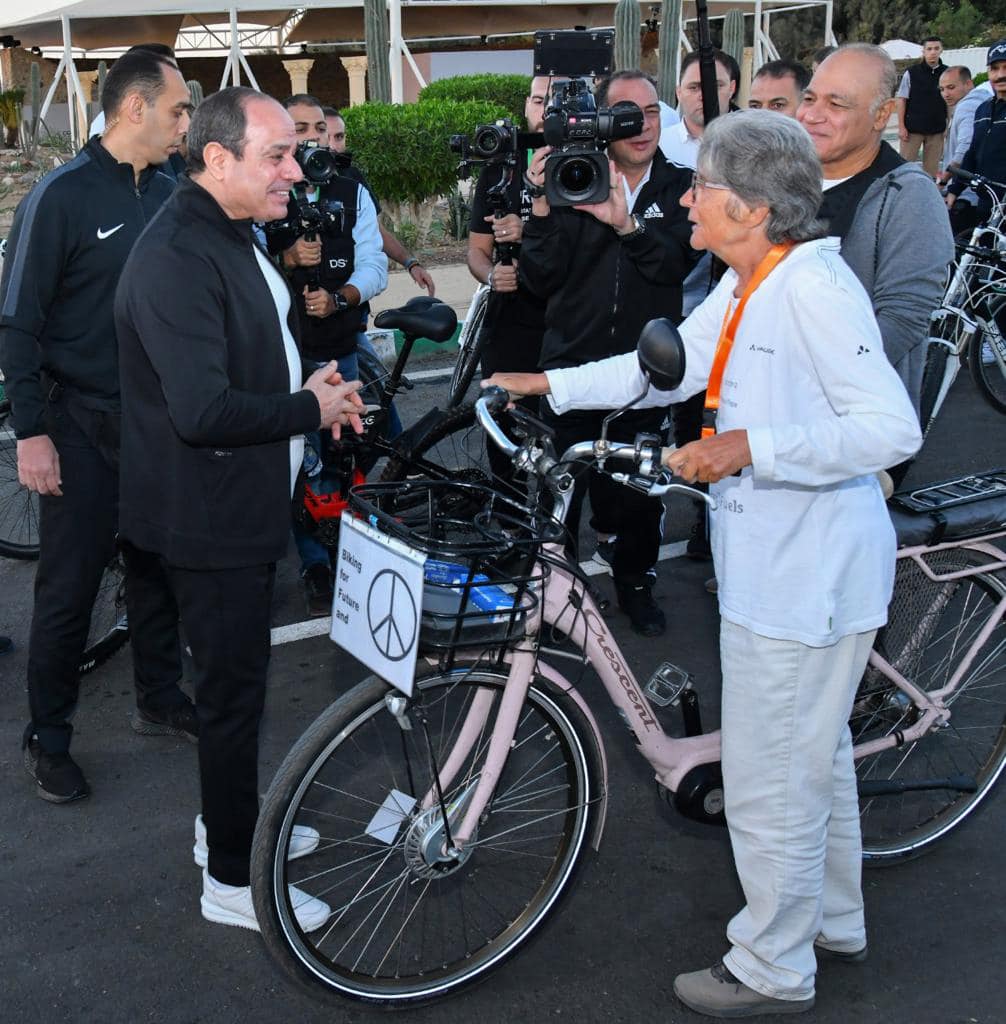 السيسي يلتقى سويدية قطعت 7 آلاف كيلو متر بالدراجة إلى شرم الشيخ