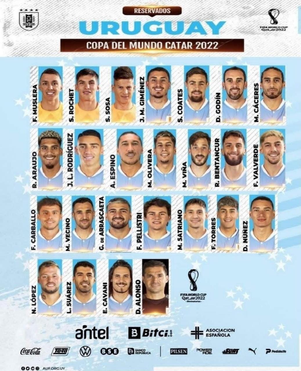 أعلن دييجو ألونسو، المدير الفني لمنتخب أوروجواي عن قائمتة النهائية استعدادا لخوض منافسات كأس العالم 2022 في قطر.