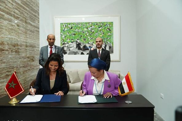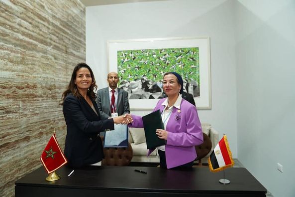 وقعت الدكتورة ياسمين فؤاد وزيرة البيئة والمنسق الوزراي ومبعوث مؤتمر المناخ COP27 والدكتورة ليلي بنعلي وزيرة الانتقال الطاقي والتنمية المستدامة بالمملكة المغربية مشروع مذكرة تفاهم بين جمهورية مصر العربية والمملكة المغربية لتعزيز التعاون فى مجال حماية البيئة والتنمية المستدامة وذلك على هامش قمة مؤتمر المناخ COP27 المنعقدة بمدينة شرم الشيخ.