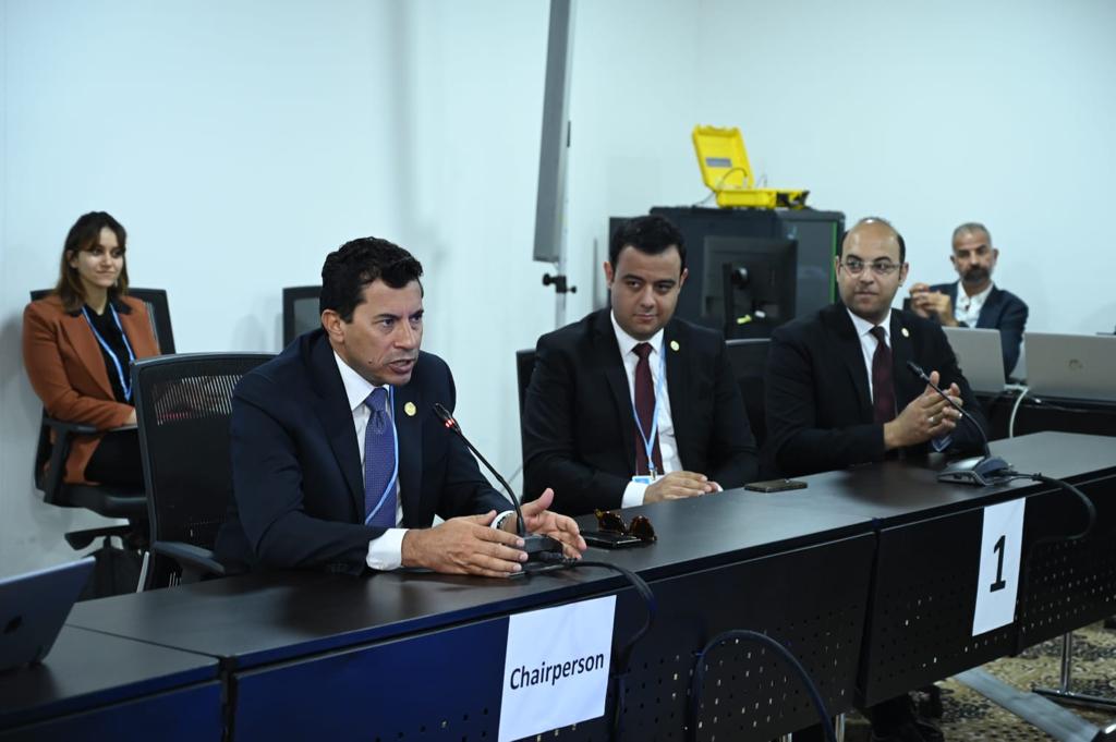 التقي الدكتور أشرف صبحي وزير الشباب والرياضة، إليزابيث جولوغولو، زان نورثكوت ممثلا دائرة الشباب والنشء لاتفاقية التغير المناخي YOUNGO، على هامش فعاليات الدورة الـ 27 لمؤتمر الأطراف لاتفاقية الأمم المتحدة لتغير المناخ "cop27"، وتستمر فعالياته حتى 18 نوفمبر الجاري، بمدينة شرم الشيخ.