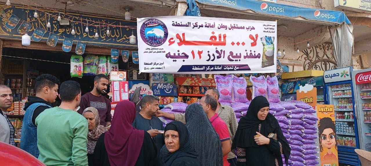 أطلقت أمانة الحزب بالمحافظة، عدد كبير من المنافذ في المراكز والقري، لطرح الأرز الأبيض الفاخر بسعر مخفض بـ12 جنيه للكيلو للمواطنين من حاملي بطاقة التموين تحت شعار "لا.. للغلاء"، ويحتوي الكيس علي 10ك أرز لكل حاملي بطاقة التموين، وذلك في مراكز السنطة، وزفتي، والحي البحري، وكفر عنان، وعزبة المصرى والصوامع، وخلف السكة الحديد، والغزالى لأهالي وسط البلد.