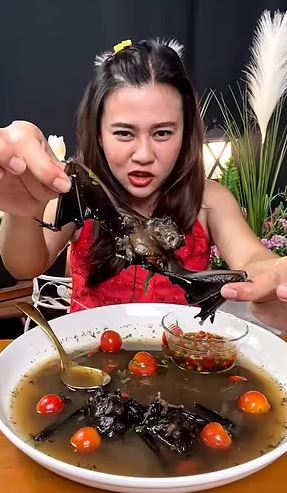 تواجه بلوجر تايلاندية السجن خمس سنوات بعد أن صورت نفسها وهي تأكل خفاشًا كاملاً في وعاء من الحساء، فحسب ما نشر موقع الديلي ميل، قامت Phonchanok Srisunaklua بتحميل مقطع مدته دقيقة واحدة و 40 ثانية على يوتيوب بعنوان "تناول الطعام الحار واللذيذ"، حيث يكشف الفيديو الحيوانات النافقة تطفو في حساء باللون البني مع طماطم كرزية.