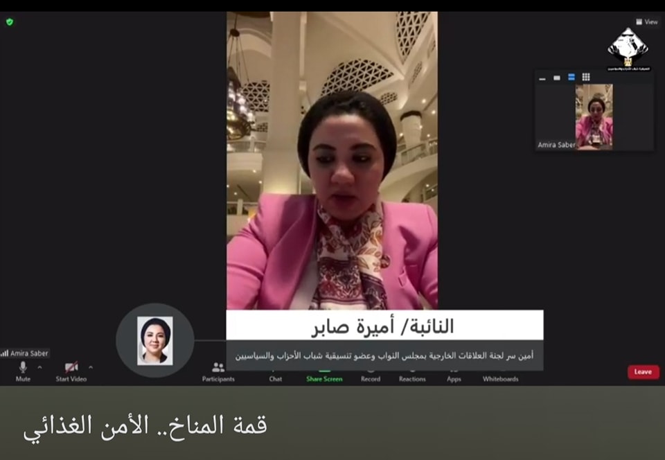 جاء ذلك، خلال مشاركتها عبر "زوم" في صالون تنسيقية شباب الأحزاب والسياسيين، بعنوان" قمة المناخ... الأمن الغذائي "، وذلك بالتزامن مع مؤتمر المناخ cop27 المنعقد بشرم الشيخ، وفي إطار حرص التنسيقية على فتح ومناقشة كافة القضايا والملفات المرتبطة بالتغيرات المناخية.