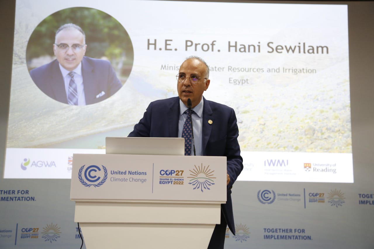 وألقى وزير الموارد المائية كلمة أشار فيها إلى أن مصر تقود الجهود العالمية لنقل مناقشات المياه إلى مركز المداولات المناخية من خلال تعزيز الروابط بين المياه والمناخ وضمان التنسيق بين جميع المبادرات من أجل تحقيق جدول أعمال المياه ٢٠٣٠.
