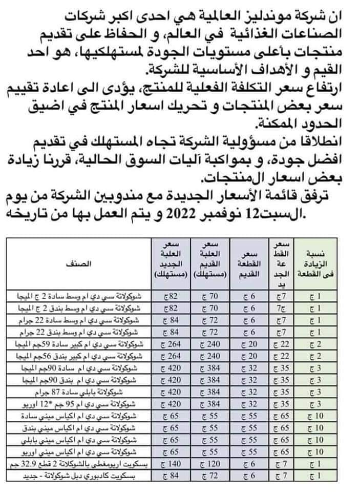 قررت شركة موندليز المتخصصة في صناعة الحلوى والشيكولاتة رفع أسعار بعض منتجاتها داخل الأسواق.