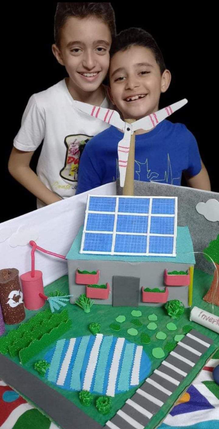 كما ذكرت عبير النموذج الثاني لإثنين من الأشقاء وهم: أحمد الحسين أحمد 11سنة، وأدهم الحسين أحمد 8 سنوات، فى المدرسة المصرية اليابانية بالعبور، وقالت والدتهم: "من صغرهم لاحظت أنهم لهم ميول فنية بيحبوا الرسم والألوان، بيحبوا يجمعوا خامات من الموجودة فى البيت زى علب أو كرتون أو بلاستيك بذور فاكهه قشر مكسرات بيعملوا لها إعادة تدوير وبيبدؤا يصنعوا منها أشكال وحاجات جميلة جدا".