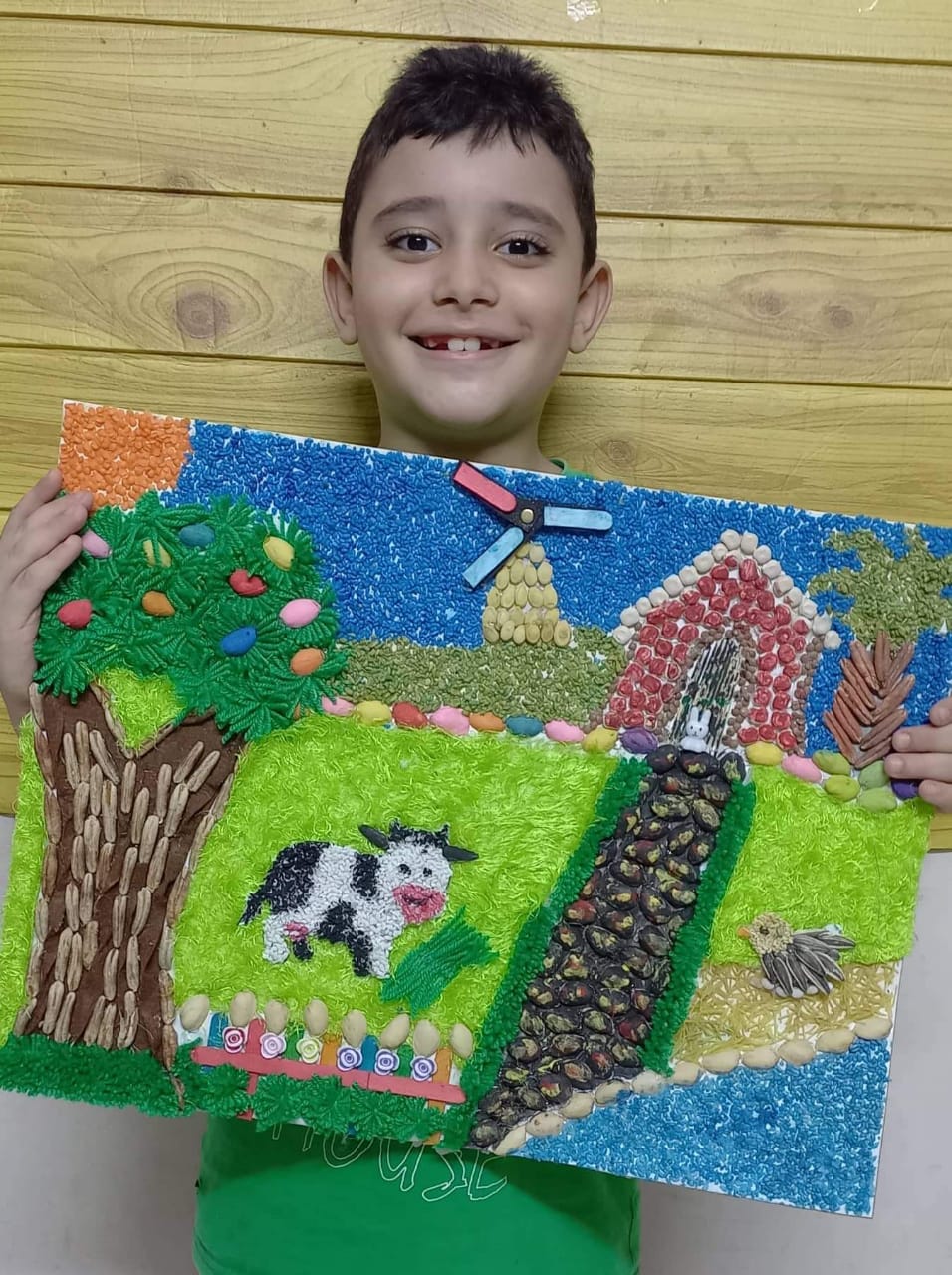 واستكملت: "ومهتم كمان بالزراعة وبيحب يزرع مع جده فحديقة المنزل الخاص بيه ويتابع النبات ويهتم بيه وبيزرع فالبيت حاجات صغيرة في البلكونة، وبيعرف أخبار المناخ وتغيراته وبيتابع دائما بسبب حبه للحيوانات ازاي نحافظ عليها من الانقراض وكمان بيحب يوجه أصحابه واللي حواليه بأهمية الحفاظ على البيئه وإعادة التدوير وكمان بيحب جدا صنع مجسمات الليجو وبيبرع فيها".