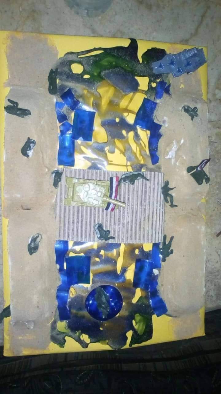 وواصلت والدته: "ولاحظت أنه بيميل أكتر لإستخدام العاب والكرتون والزجاجات ويحولها لأعمال فنية جميلة أو لأشياء ليها إستخدام، فكنت بشجعه علي كدة ونتفرج علي فديوهات إعادة التدوير واساعده، لغاية ما جه وقت اشترك بمجسم الدبابة اللي هو عامله من علب وورق وقصاقيص، اشترك به في مسابقة أرض الفيروز التابعة لصندوق التنمية الثقافية ولاقي استحسان من التحكيم وهو بيشرح ازاي عمل المجسم، ومن ساعتها عملنا بوكس كبير بيجمع فيه أي غطاء علبة شكله مميز أو أصداف، خيوط، علب، زجاجات، وبيفتحه كل فترة ويعمل منه عمل فني أو يعيد تدويرهم في شىء نستخدمه.