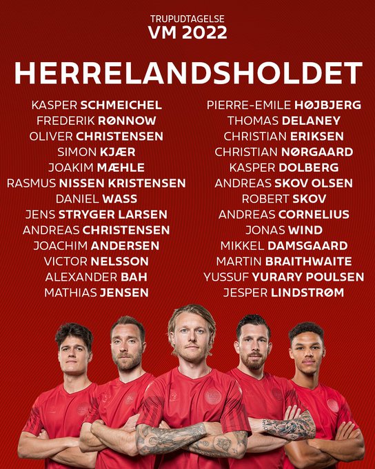 وجاءت قائمة منتخب الدنمارك كالتالي: