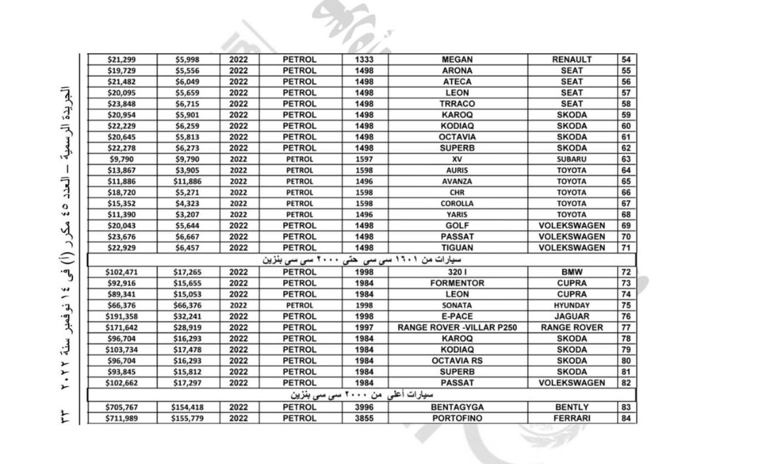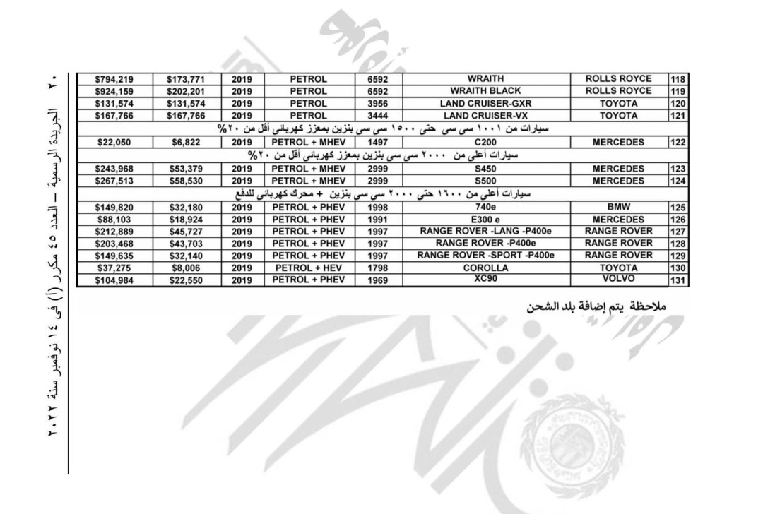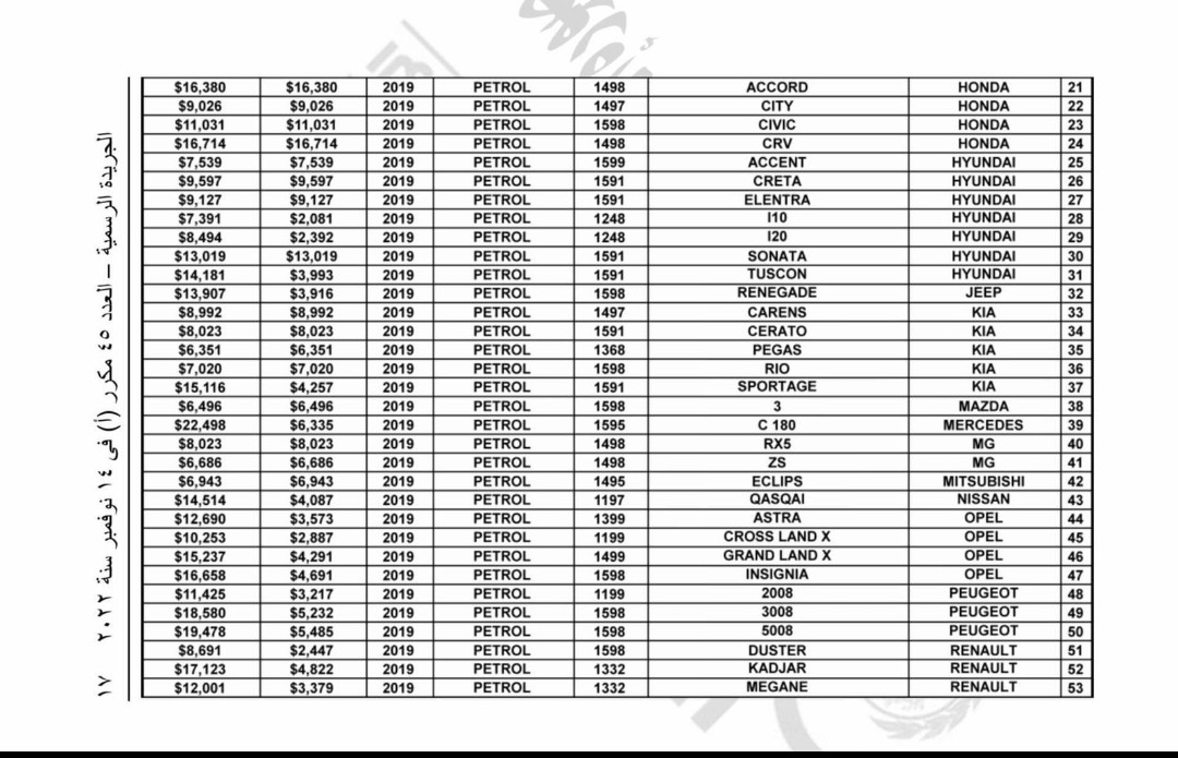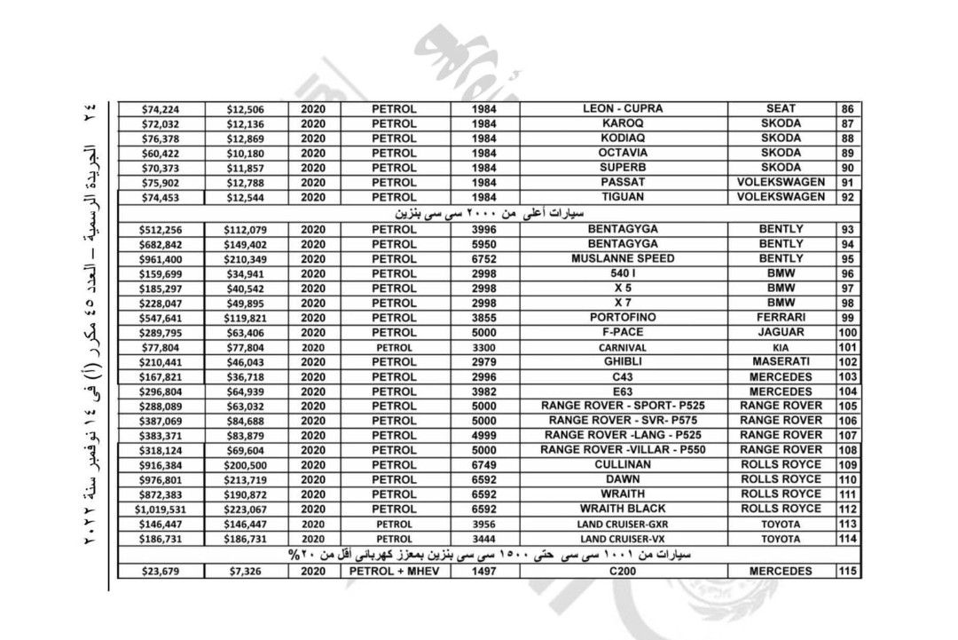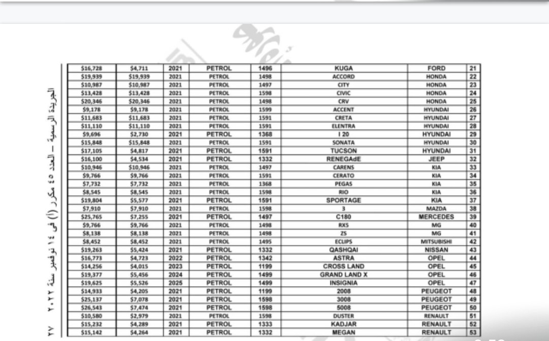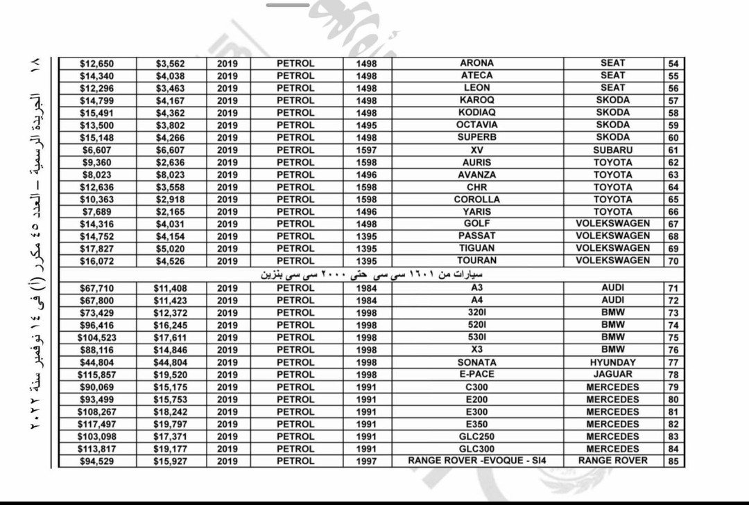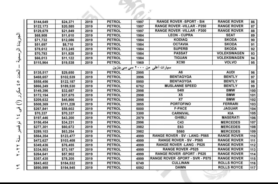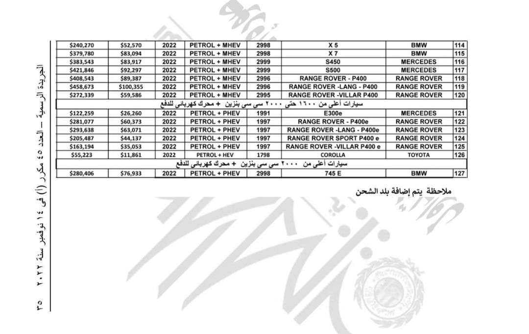 ينشر "مصر تايمز" جداول المبالغ المالية المستحقة لاستيراد سيارات المصريين في الخارج بدون جمارك في صورة وديعة تُسترد بعد 5 سنوات.