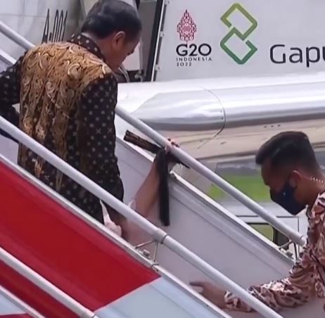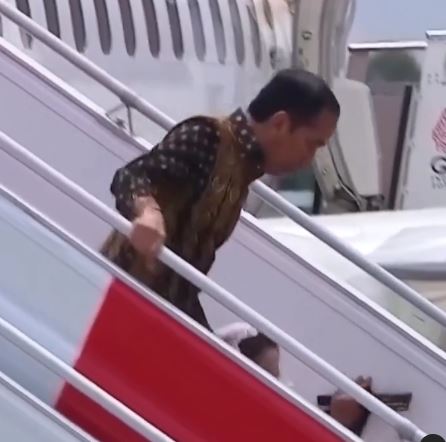 وتداول رواد مواقع التواصل الاجتماعي بشكل واسع، واقعة سقوط زوجة رئيس إندونيسيا على درج الطائرة، حيث ورصد الفيديو، السيدة الأولى إيريانا ويدودو زوجة رئيس إندونيسيا جوكو ويدودو، وهي تنزل رفقته على درج الطائرة الرئاسية عند وصولهما بالي، قبل أن تنزلق بشكل مفاجئ.