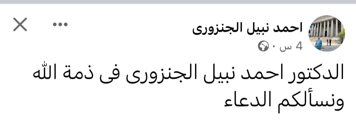ونشرت الصفحة الشخصية للدكتور أحمد الجنزوري المحامى على موقع التواصل الاجتماعي "فيس بوك": الدكتور أحمد نبيل الجنزورى فى ذمة الله ونسألكم الدعاء"، في صدمة كبيرة لأصدقاءه ومتابعى صفحته معربين عن حزنهم الكبير على رحيله.