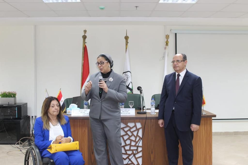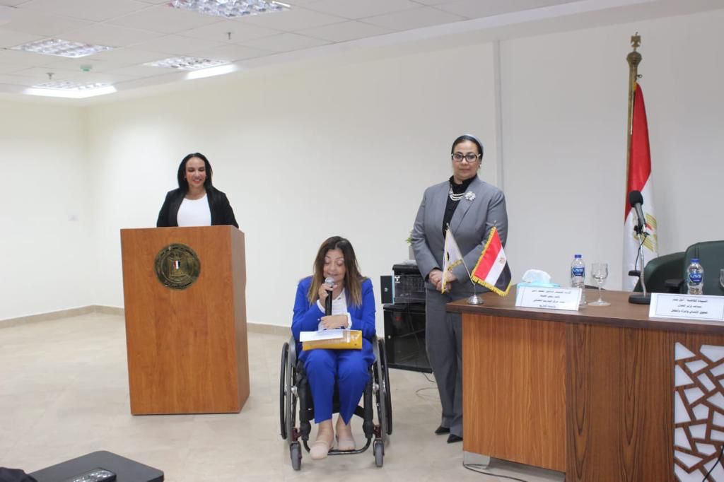 كما ألقت الدكتورة إيمان كريم -المشرف العام على المجلس القومي للأشخاص ذوي الإعاقة، كلمة رحبت فيها بالحضور، ووجهت الشكر لكل من الوزير عمر مروان - وزير العدل، والمستشار عدلي جاد - رئيس هيئة النيابة الإدارية، والقاضية أمل عمار - مساعد وزير العدل لقطاع حقوق الإنسان والمرأة والطفل، مشيدة بالتعاون المثمر بين النيابة الإدارية والمجلس القومي للأشخاص ذوي الإعاقة، مؤكدة حرص المجلس على تنفيذ العديد من ورش العمل بهدف التوعية بالمفاهيم الصحيحة للإعاقة، والعمل على إكساب المشاركين بعض مهارات التواصل الفعال مع الأشخاص ذوي الإعاقة تحقيقًا لرؤية مصر في التنمية المستدامة 2030، واختتمت كلمتها موجهة خالص الشكر لفخامة السيد الرئيس عبد الفتاح السيسي - رئيس الجمهورية، على اهتمامه البالغ ودعمه لتكريس حقوق الأشخاص ذوي الإعاقة، ولمركز التدريب القضائي بالنيابة الإدارية لحرصه على عقد مثل تلك الدورات.