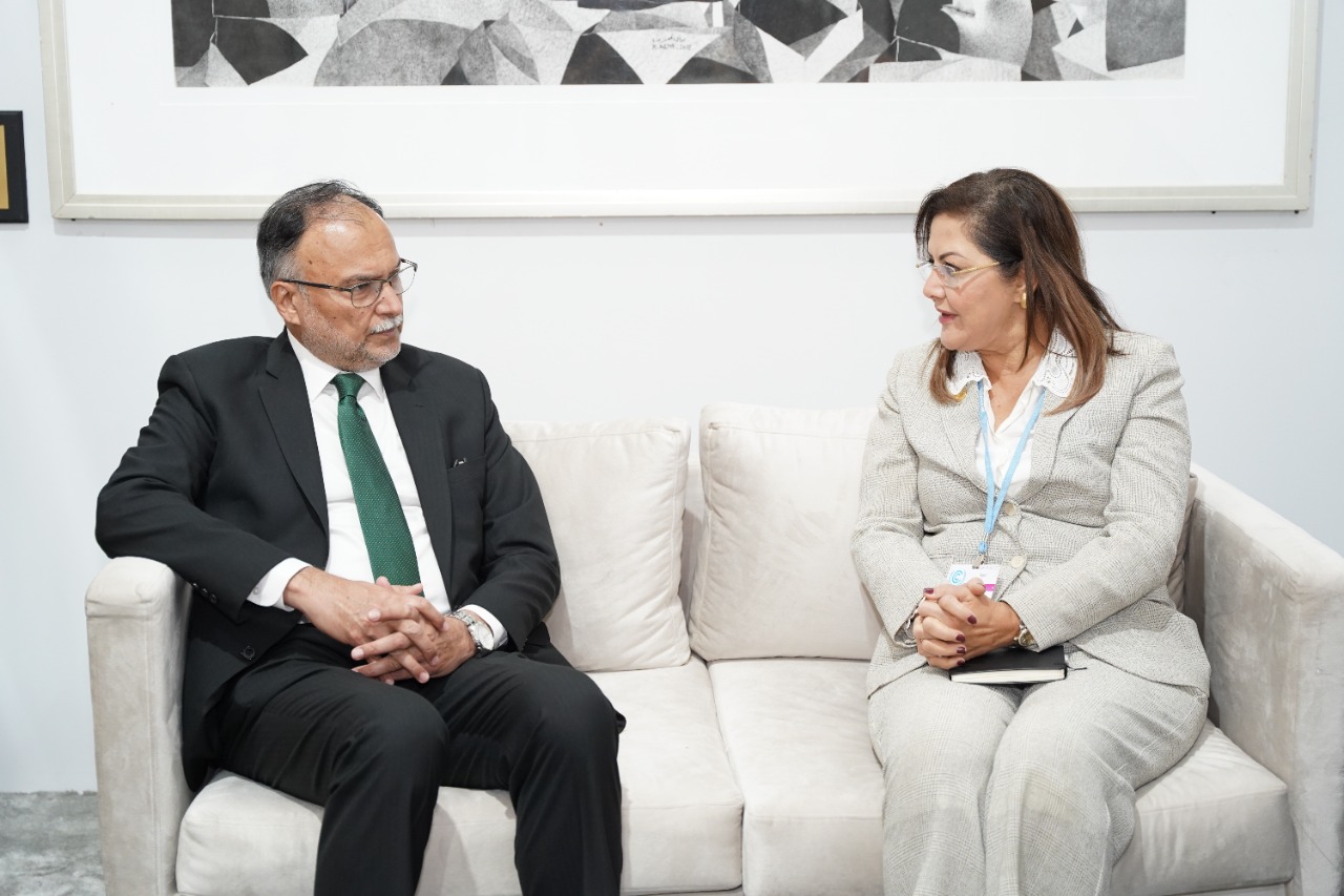التقت الدكتورة هالة السعيد، وزيرة التخطيط والتنمية الاقتصادية؛ أحسن إقبال، وزير التخطيط والتنمية الباكستاني، لبحث سبل التعاون المشترك، وذلك على هامش فعاليات مؤتمر الأطراف لاتفاقية الأمم المتحدة الإطارية حول تغير المناخ COP27، والذي تستضيفه مصر بمدينة شرم الشيخ خلال الفترة من 7 - 18 نوفمبر.