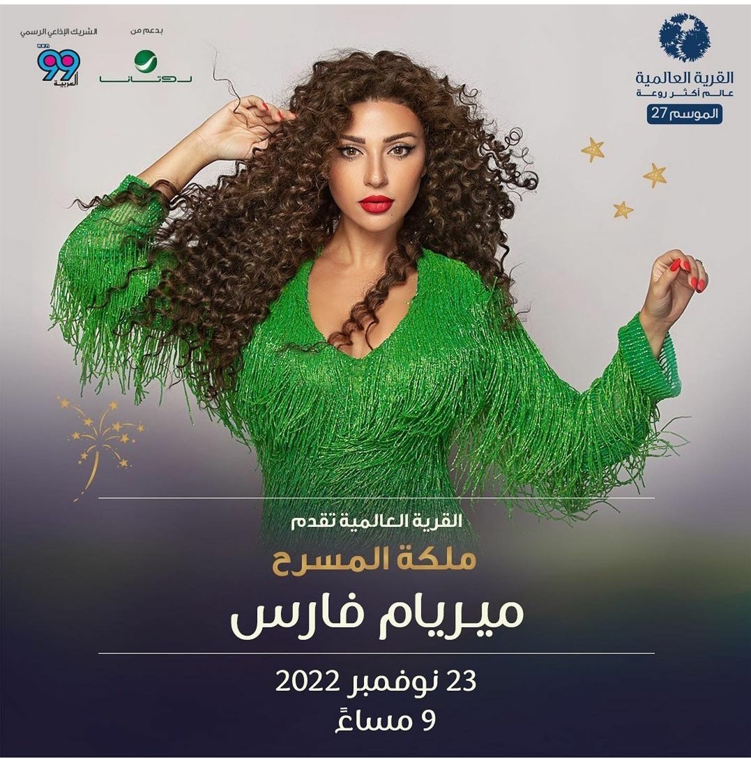 تستعد الفنانة ميريام فارس، لإفتتاح أولى حفلات الموسم ال 27 للقرية العالمية في مدينة دبي.