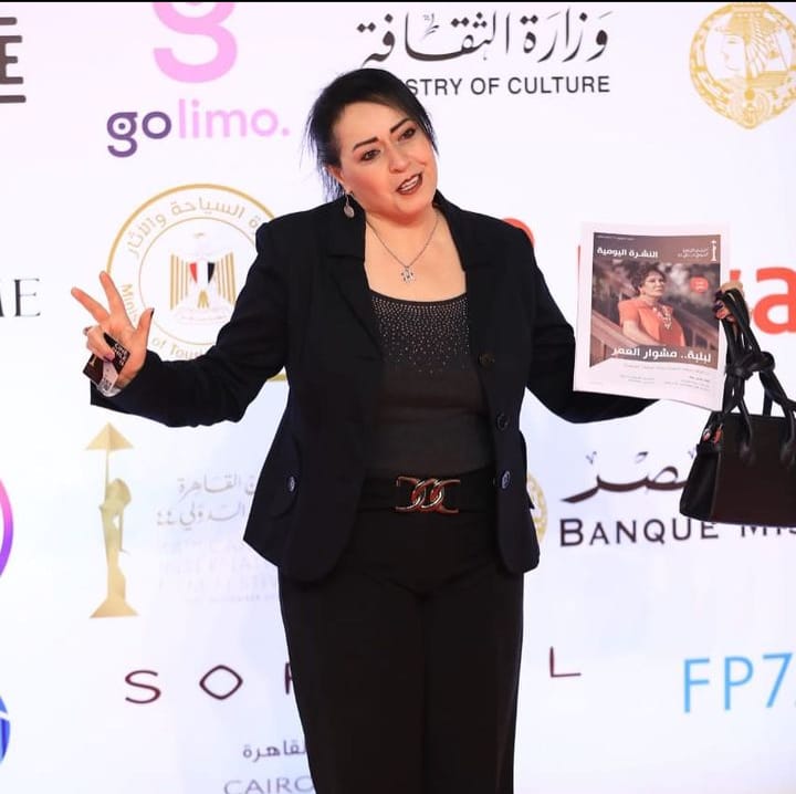 وارتدت هند عاكف، بدلة سوداء كلاسيك ومكياج بسيط، ولفتت النظر إليها بعد مسكها كتاب عليه صورة الفنانة لبلبة.