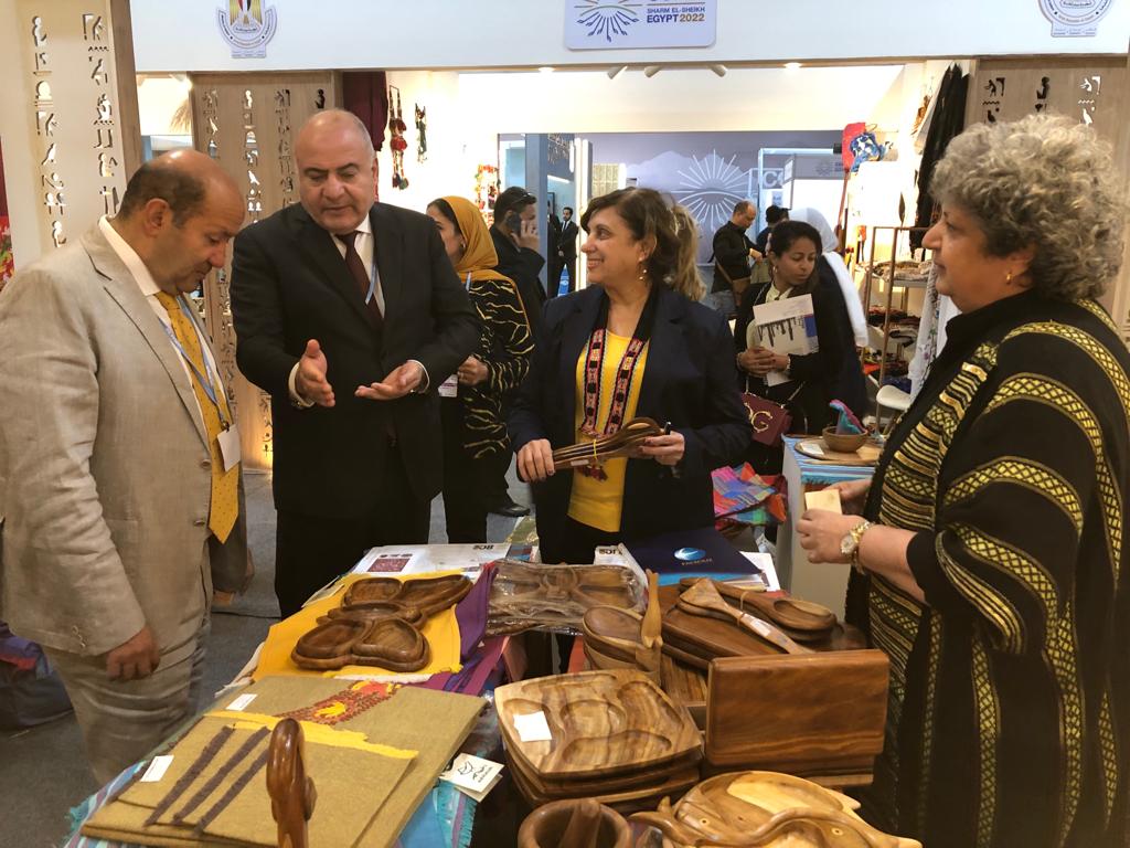 تحت رعاية الدكتورة نيفين الكيلاني، وزيرة الثقافة، استمرت الفعاليات الفنية والثقافية، التي تقيمها وزارة الثقافة، بقمة المناخ cop27 بشرم الشيخ، حيث استقبل جناح وزارة الثقافة للحرف التقليدية والتراثية، بالمنطقة الخضراء، العديد من ضيوف مصر في قمة المناخ ، حيث زار الجناح، اللواء شريف محمد ، رئيس مجلس إدارة هيئة تنمية الصعيد، بمجلس الوزراء، واللواء أشرف الداودي، محافظ قنا، السفير هشام بدر، المنسق العام للمبادرة الوطنية للمشروعات الخضراء الذكية، بالإضافة للعديد من الأجانب والمصريين والعرب الذين حرصوا على تفقد جنبات الجناح، وأبدوا إعجابهم بالمعروضات التراثية والتقليدية.