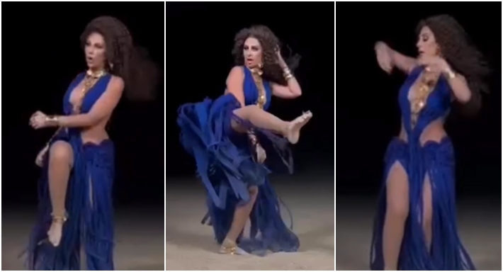 وظهرت ميريام فارس وهي ترقص بفستان أزرق مفتوح مع تسريحة شعرها الشهيرة وشبهها البعض بشاكيرا وحركاتها.