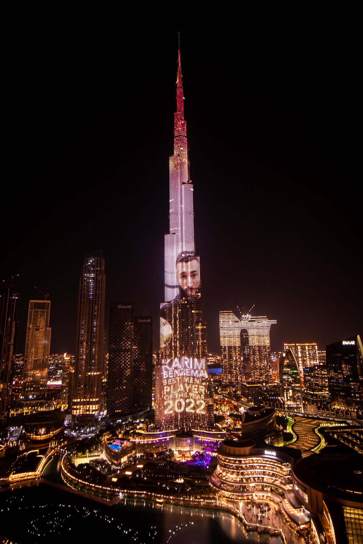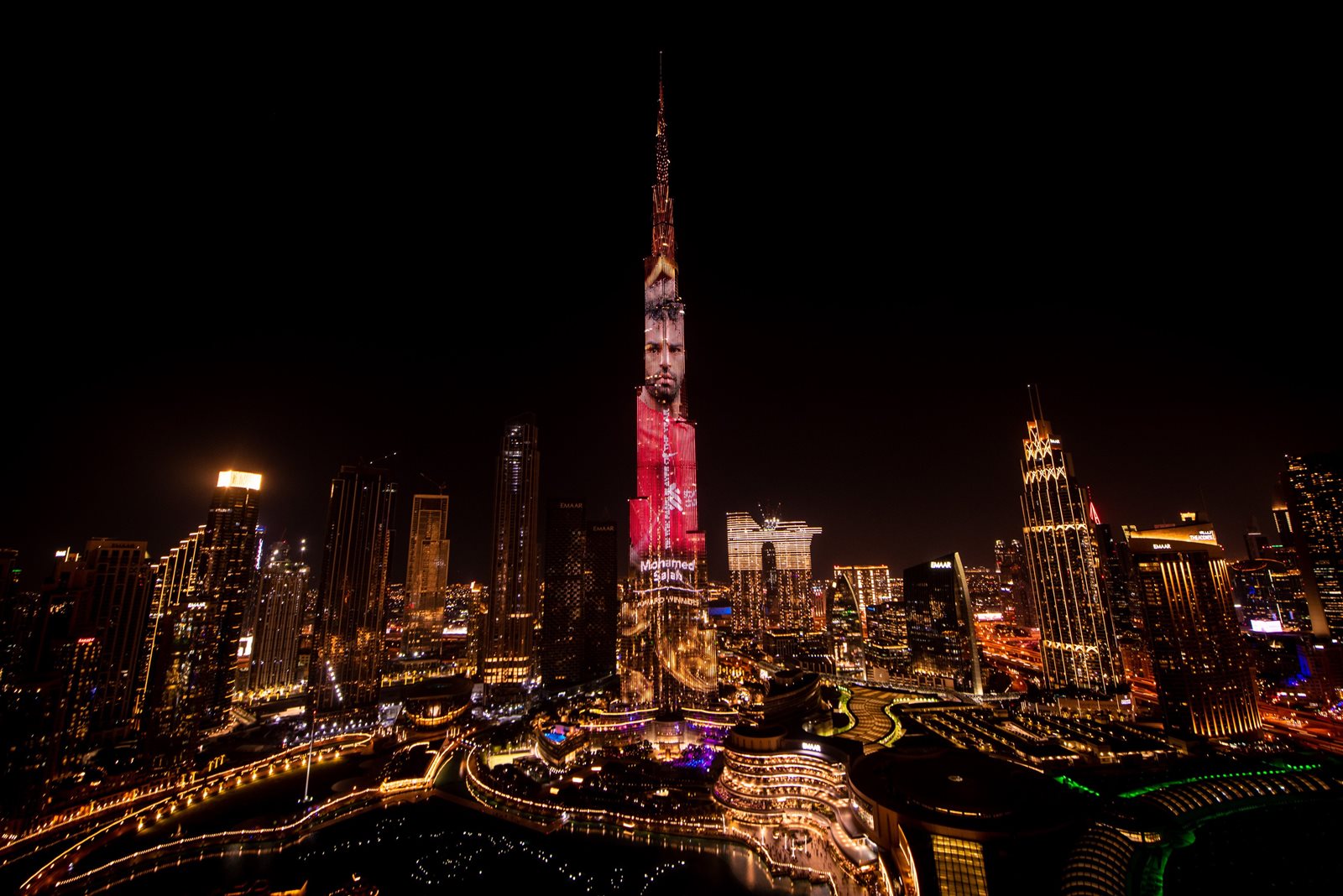 صلاح يزين برج خليفة بعد فوزة بجائزة الأفضل بتصويت الجمهور