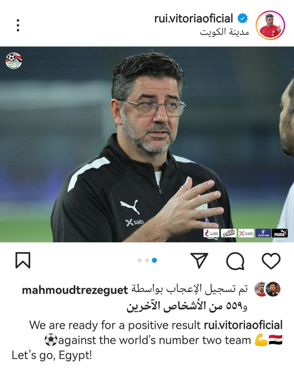 قال البرتغالي روي فيتوريا، المدير الفني للمنتخب الوطني، أن منتخب مصر جاهز لخوض مباراة بلجيكا الودية المقرر إقامتها غداً بدولة الكويت، ونشر فيتوريا عبر حسابه الشخصي على "إنستجرام": "جاهزون لتقديم نتيجة إيجابية أمام المنتخب الثاني على العالم، هيا بنا مصر".