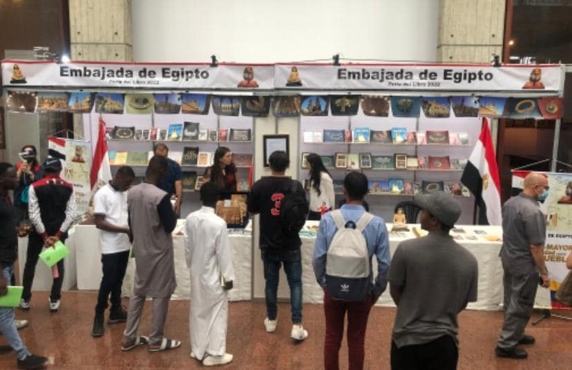 وفي ختام جولته بالجناح المصري، أهدته السفارة المصرية كتاباً باللغة الأسبانية عن أهم المعالم السياحية المصرية، حيث يشهد الجناح المصري إقبالاً شديداً من جمهور المعرض.