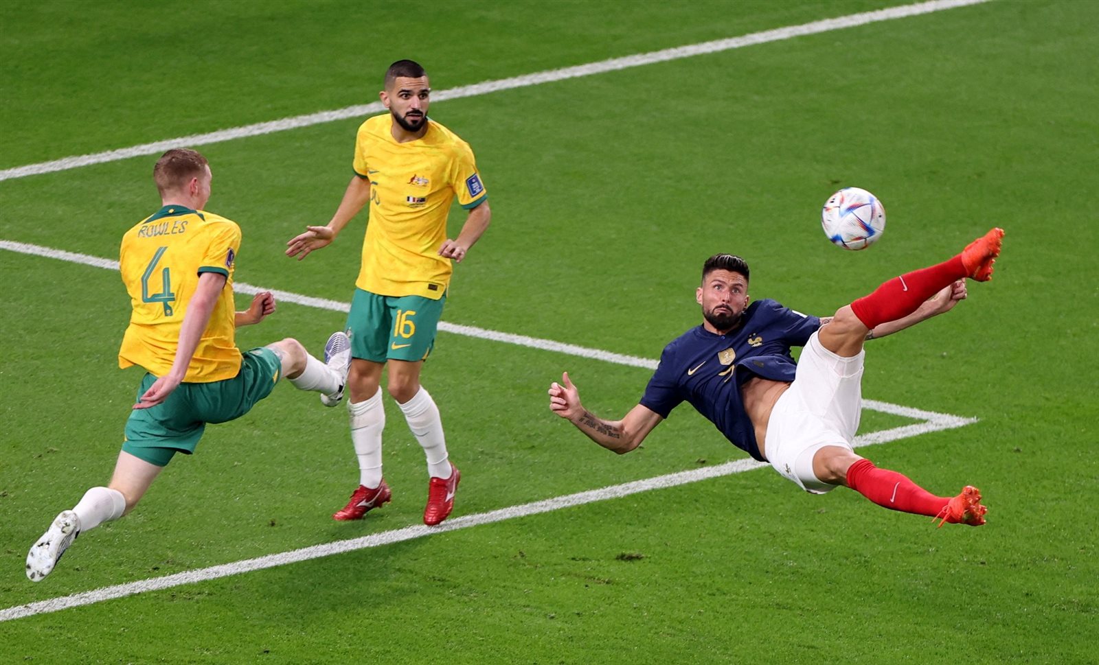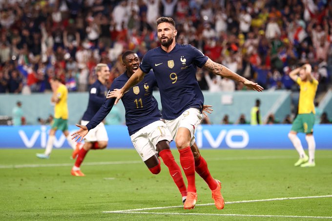 ثم أضاف جيرو الهدف الرابع لمنتخب فرنسا في مرمي أستراليا بالدقيقة 72 من عرضية مبابي، بينما أضاف مبابي الهدف الثالث في الدقيقة 68 من عرضية ديمبلي.