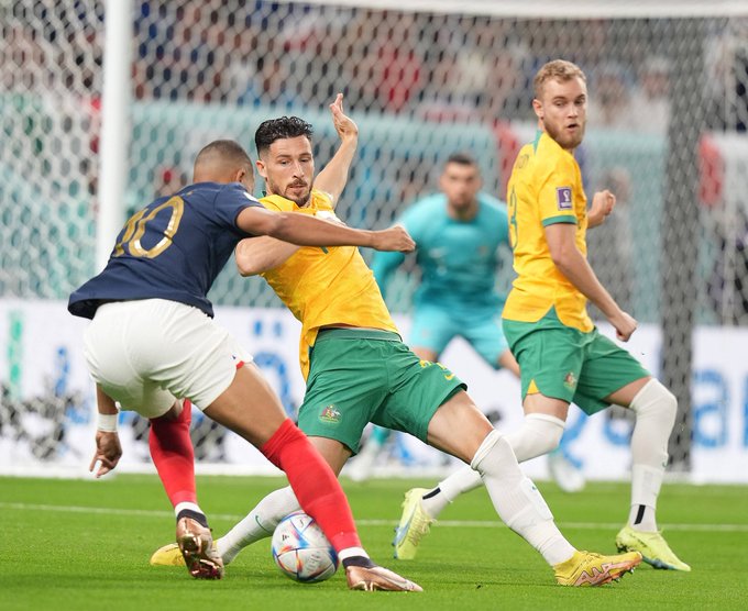 أحرز كرينج جودين لاعب أستراليا، هدف التقدم في مرمي فرنسا بالدقيقة 10 بعد تمريرة من ماثيو ليكي
