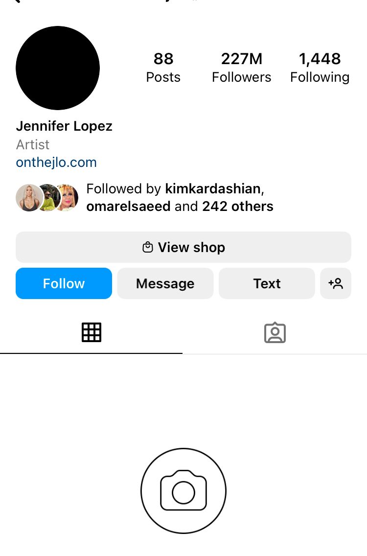 حذفت المغنية والممثلة العالمية، جنيفر لوبيز، جميع منشورات حسابها على إنستجرام الذي يضم 227 مليون متابع، وتم استبدال صورة الملف الشخصي بصورة سوداء فقط.