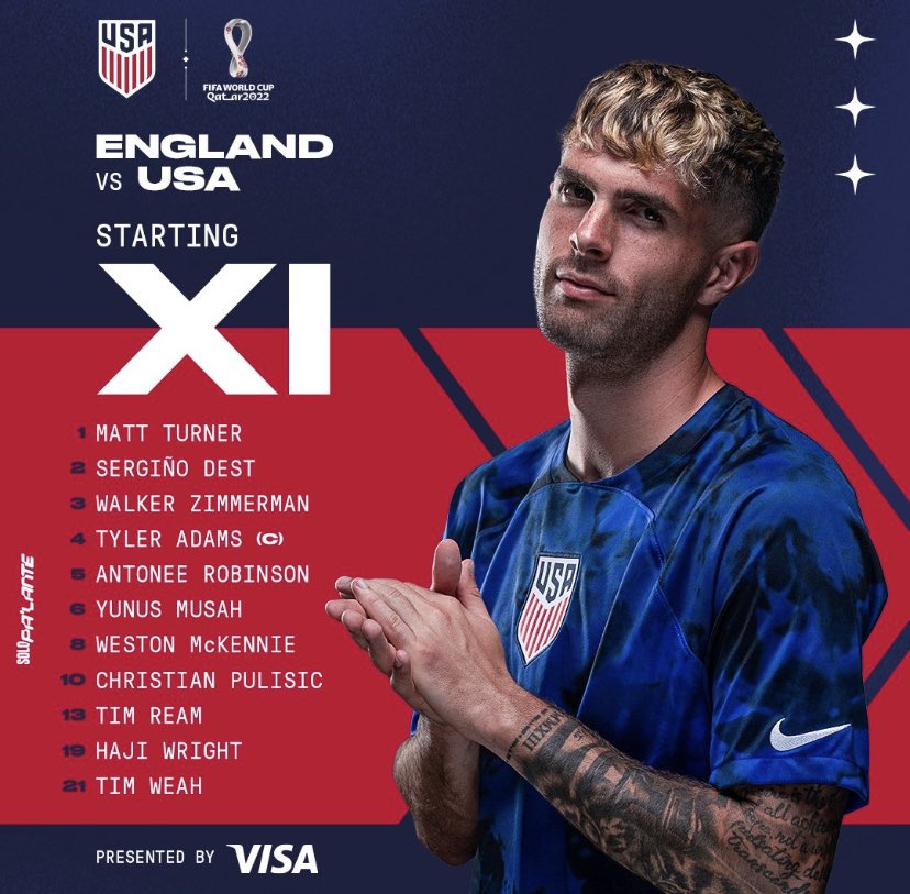 أعلن جاريث ساوثجيت، مدرب منتخب إنجلترا، وجريج برهالتر، مدرب منتخب أمريكا، عن التشكيل الرسمي للمنتخبين، في المباراة التي تجمعهما بعد قليل، على ملعب "البيت"، ضمن منافسات الجولة الثانية من المجموعة الثانية من بطولة كأس العالم 2022.