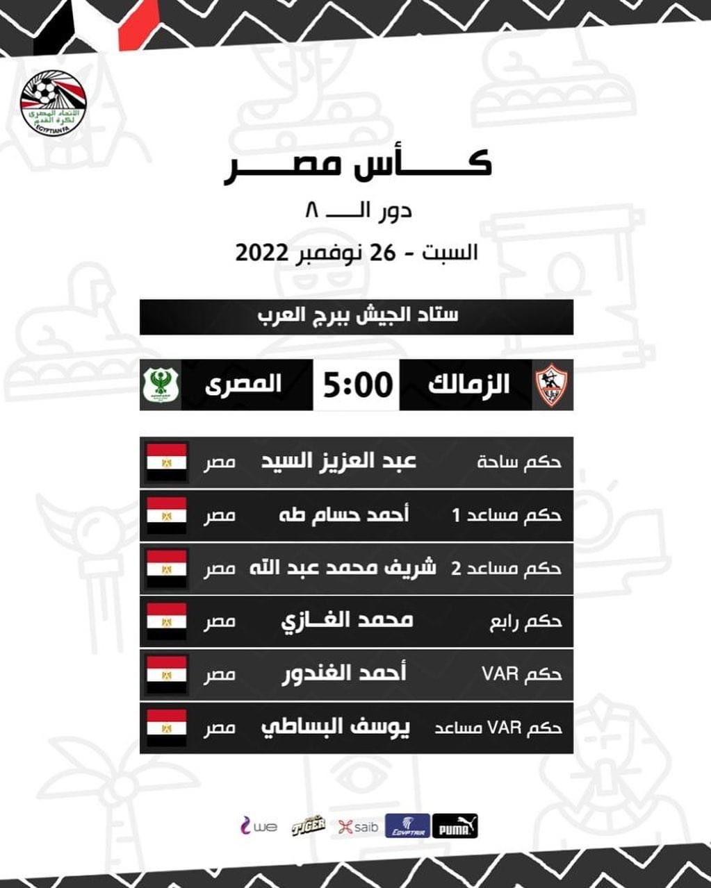 تعرف علي حكام مباراة الزمالك والمصري البورسعيدي في كأس مصر غداً