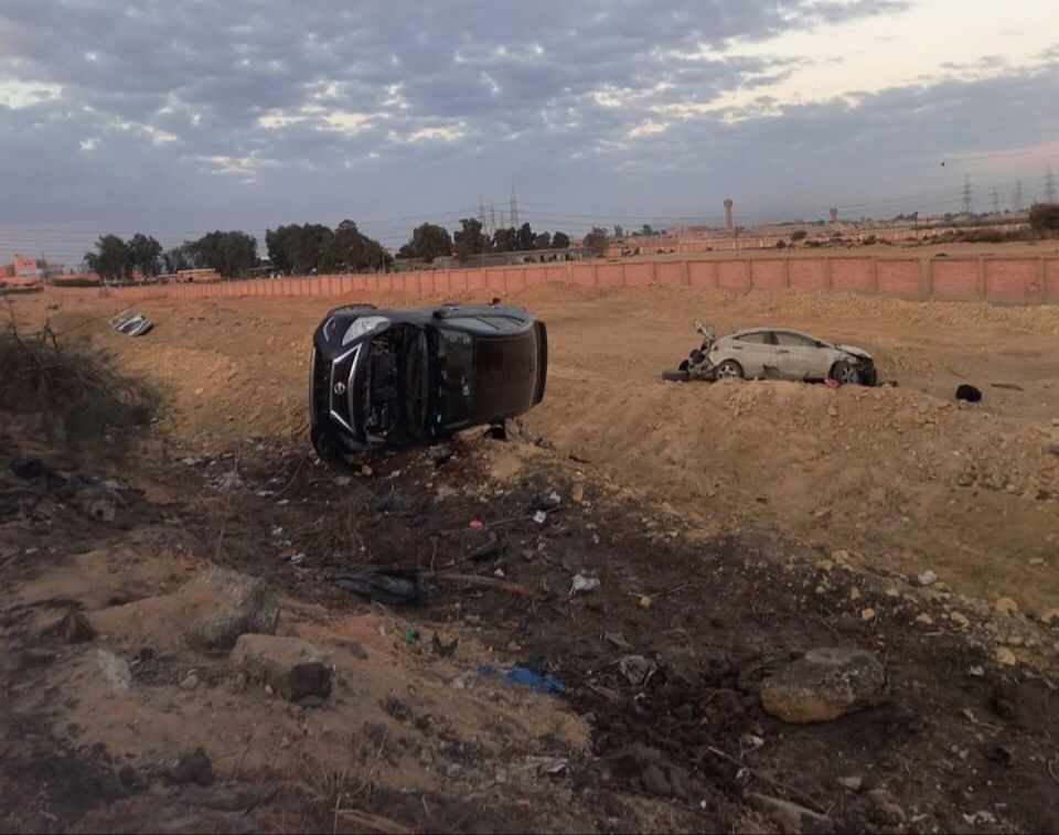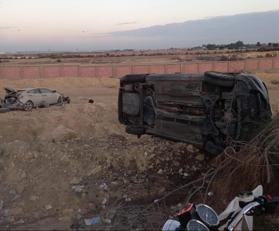 إصابة 4 أشخاص فى حادث انقلاب 3 سيارات بطريق بلبيس القاهرة الصحراوى