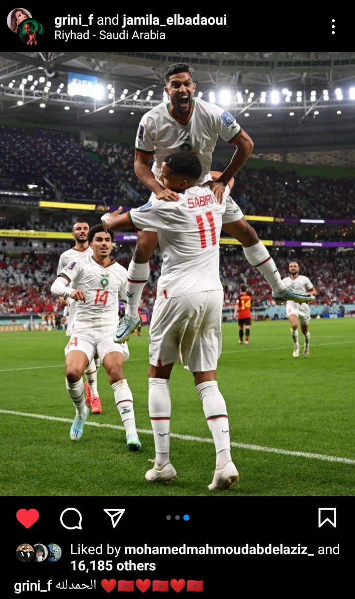 وشارك عبد الفتاح الجريني صور لمجموعة من لاعبي كرة القدم، معلقا عليها “الحمدلله”، حيث دخل منتخب المغرب اليوم مباراته الثانية مع منتخب بلجيكا برصيد نقطة واحدة، فى الجولة الثانية من مجموعات كأس العالم قطر 2022.
