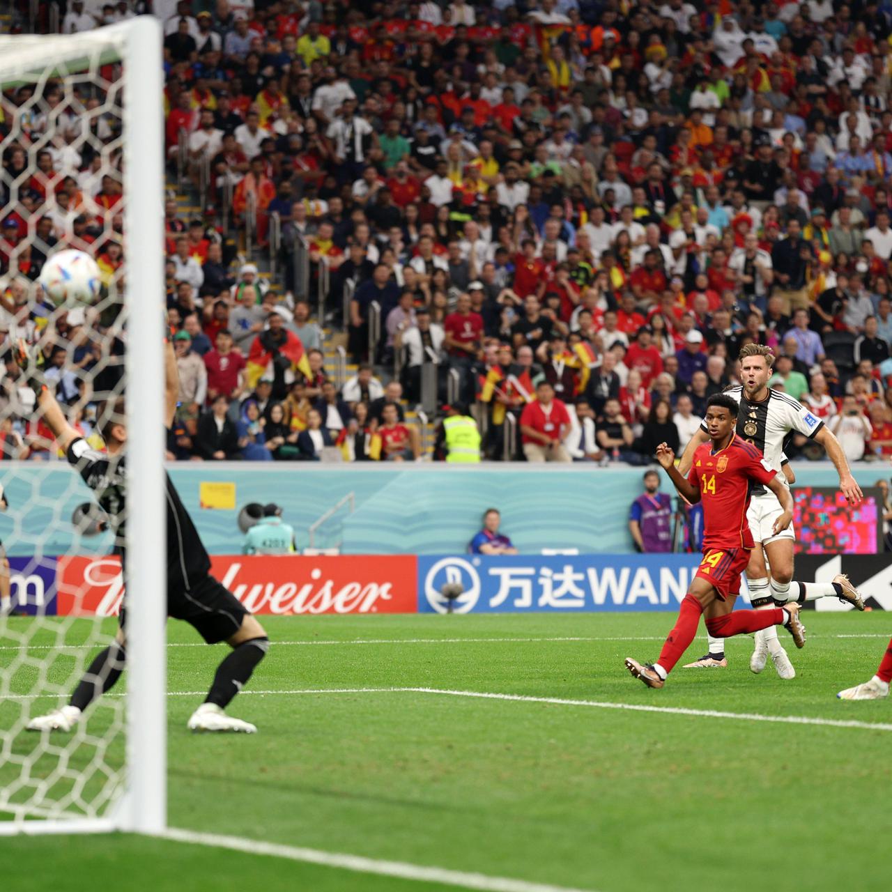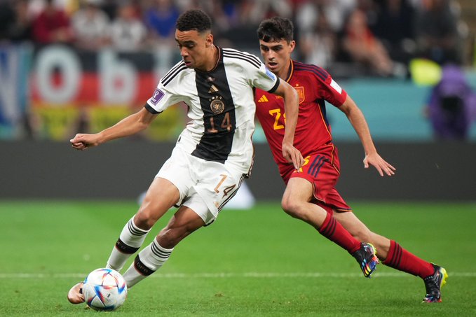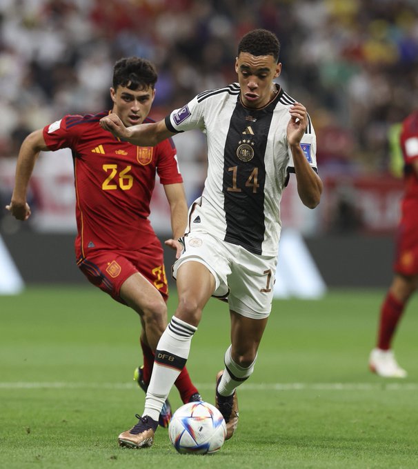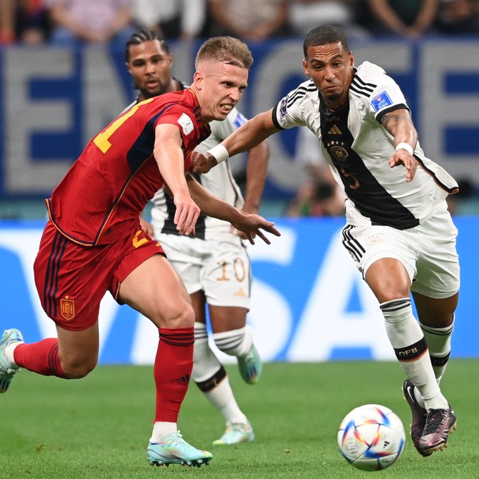 انتهت مباراة منتخبي ألمانيا وإسبانيا بالتعادل الإيجابي 1-1 في المباراة التي جمعت بينهما على ملعب "استاد البيت"، ضمن منافسات الجولة الثانية للمجموعة الخامسة من بطولة كأس العالم 2022 المقامة حالياً في قطر.