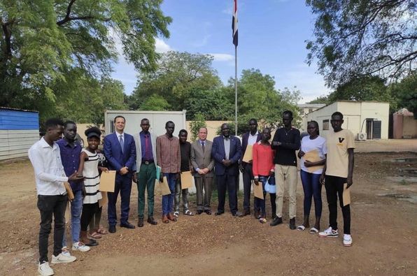 قام السفير "معتز مصطفى عبد القادر"، سفير جمهورية مصر العربية لدى جمهورية جنوب السودان بتنظيم حفل استقبال لمجموعة من الطلبة الجنوب سودانيين الذين تم قبولهم للدراسة في الجامعات المصرية للعام الدراسي 2022/2023، وذلك في إطار برنامج المنح الدراسية السنوي المقدم من جمهورية مصر العربية إلى جنوب السودان.