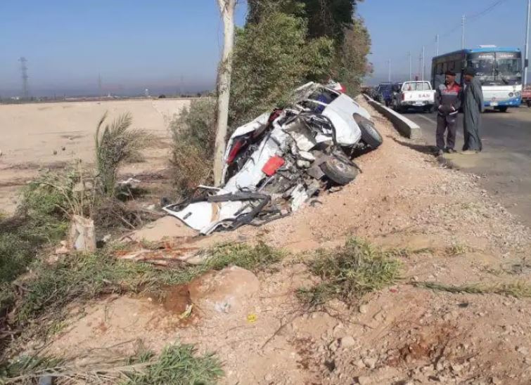 أول صور من حادث تصادم ميكروباص بتريلا على طريق قنا الصحراوى