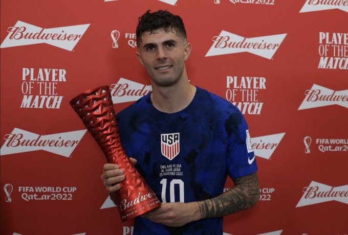 توج كريستيان بوليسيتش، لاعب منتخب الولايات المتحدة الأمريكية، بجائزة افضل لاعب في مباراة منتخب بلاده ضد إيران، بعدما قاد منتخب أمريكا للتأهل إلى دور الـ16، بعد الفوز على نظيره الإيراني بنتيجة 1-0، خلال المباراة التى جمعت المنتخبين مساء الثلاثاء باستاد الثمامة، وذلك في لقاء الجولة الثالثة من دور المجموعات ضمن منافسات المجموعة الثانية من بطولة كأس العالم 2022.