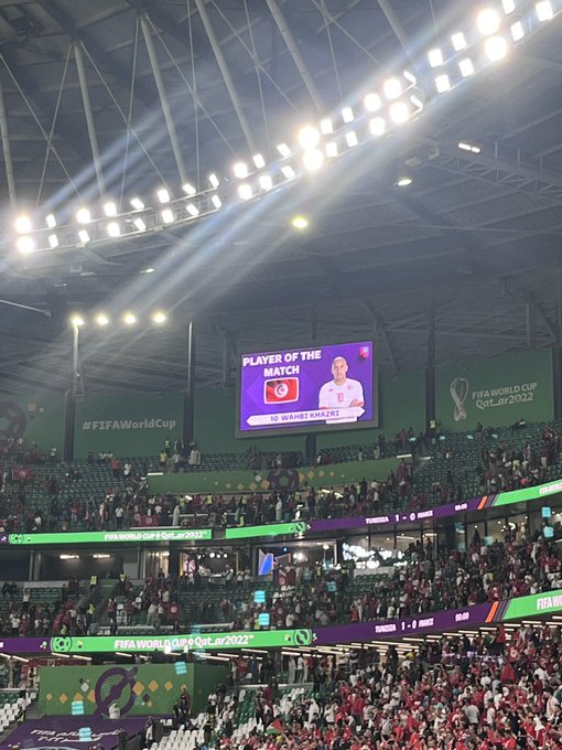 حصل وهبي الخزري، علي جائزة أفضل لاعب في مباراة تونس ضد فرنسا التي انتهت بنتيجة 1-0 في المباراة التي جمعت بينهما، على استاد "المدينة التعليمية"، ضمن منافسات الجولة الثالثة والأخيرة للمجموعة الرابعة لبطولة كأس العالم 2022.