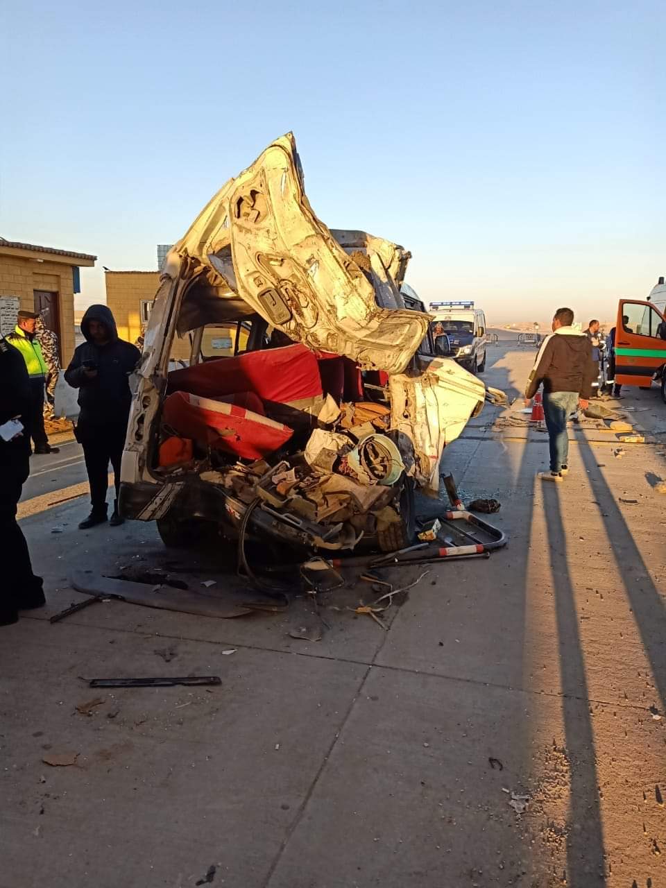 تلقى اللواء عبد الرحمن هريدي مدير أمن السويس إشارة من شرطة النجدة، بوقوع حادث تصادم سيارة رقم ع و ط 7581 مع سيارة ميكروباص رقم ط س س 1598 طريق "مصر - السويس" .