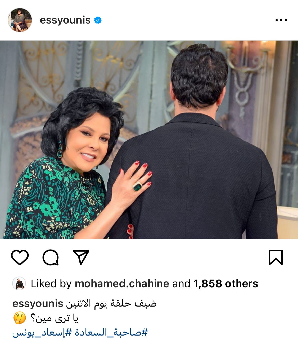شوقت الفنانة إسعاد يونس، جمهورها لضيف الحلقة القادمة من برنامجها المميز"صاحبة السعادة"، وذلك عبر حسابها الرسمي بموقع تبادل الصور والفيديوهات انستجرام.