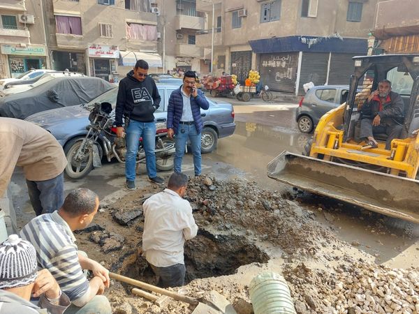 إصلاح كسر ماسورة بشارع أحمد لطفي وغلق محل بلاي استيشن بالعمرانية
