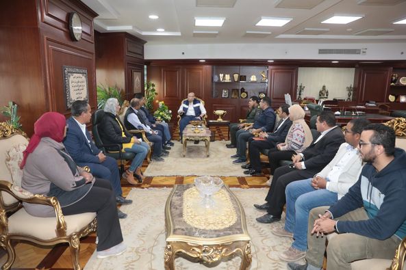 محافظ بني سويف يجتمع بفريق العمل لمناقشة الحلول المقترحة لتأمين عزبة دير الحديد