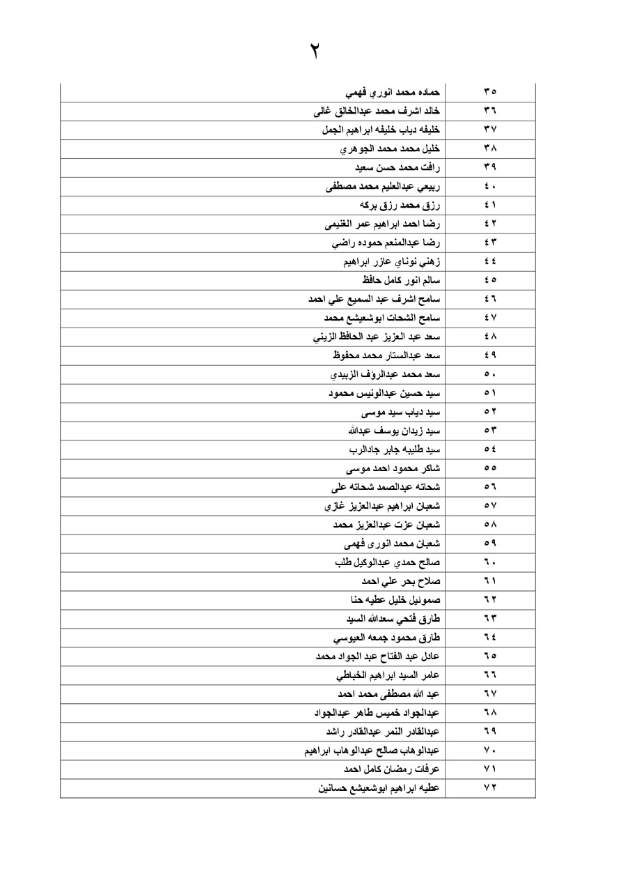 وأضاف الملحق العمالي أنه طبقا لإجراءات المؤسسة العامة للضمان الاجتماعي بالأردن،سيتم استرجاع المبالغ غير المصروفة بعد مرور 50 يوما من تاريخ الإعلان عن تحويل المستحقات، مشيرا إلى انه يتم بشكل مستمر التنسيق والتجهيز لإرسال باقي الدفعات لمستحقيها تباعا ، فور تدقيقها من الجهات المعنية حفاظا على حقوق المواطنين المستحقين لهذه الدفعات ، وتضم القائمة الجديدة الاسماء المرفقة مع هذا البيان: