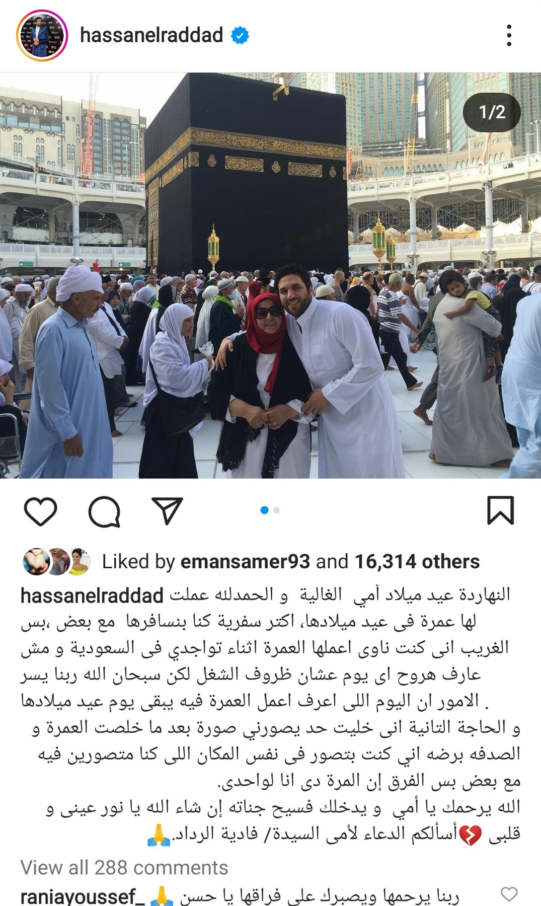 حرص الفنان حسن الرداد، على إحياء ذكرى ميلاد والدته، بذهابه إلى أداء العمرة على روحها وذلك عبر حسابه الشخصي على انستجرام.