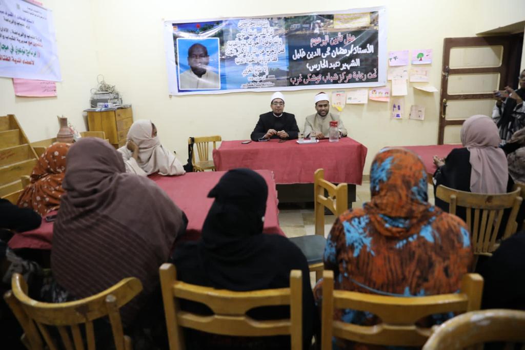 واصل مركز الأزهر العالمي للفتوى الإلكترونية، بالتعاون مع وزارة الشباب والرياضة، اليوم الاثنين، فعاليات برنامج "توعية وتأهيل المقبلين على الزواج"، المُقامة في محافظة أسوان، بعقد لقاء جماهيري مع الأهالي بمراكز الشباب في قرى توشكى غرب والريقة التابعة لمركز نصر النوبة بمحافظة أسوان.