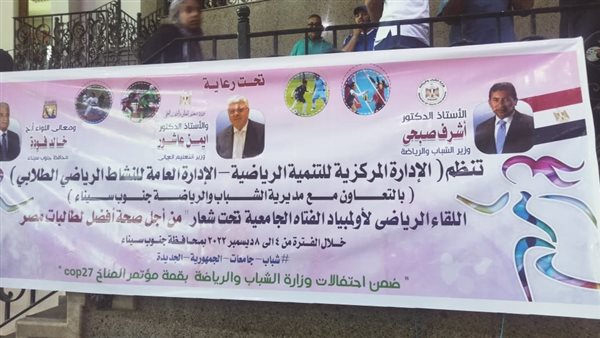 ويأتى ذلك تحت رعاية الدكتور أشرف صبحى وزير الشباب والرياضة واللواء خالد فودة محافظ جنوب سيناء والدكتور أيمن عاشور وزير التعليم العالى، وذلك بحضور محمد فتحى وكيل وزارة الشباب والرياضة بجنوب سيناء والدكتور عادل الهوارى المسروق على المشروع للاولمبياد الفتاة الجامعية وأحمد مسعد وكيل الرياضة بجنوب سيناء والعديد من الشخصيات الرياضية بجنوب سيناء، حيث تم الانتهاء من منافسات اليوم في كرة القدم وألعاب القوى والكاراتيه.