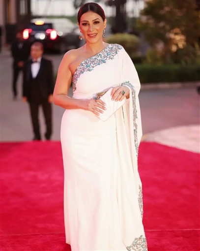 إنجي المقدم بفستان أبيض في عرض فيلمها "كاملة" بمهرجان البحر الأحمر
