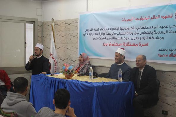 نظمت وزارة الشباب والرياضة الإدارة المركزية لتنمية الشباب- الادارة العامة للبرامج والأنشطة الجامعية، بالتعاون مع مركز الأزهر العالمي للفتوى الإلكترونية بمشيخة الأزهر الشريف ووزارة التعليم العالي الإدارة العامة لرعايه الطلاب، لقاء طلابي بالمعهد العالي لتكنولوجيا البصريات شيراتون بمصر الجديدة، بعنوان"أسس الحياة السعيدة"، وذلك في إطار حرص الوزارة على الإهتمام بالقضايا المعاصرة وتوجيه الشباب نحو حياة أفضل ونبذ الافكار الهدامة.