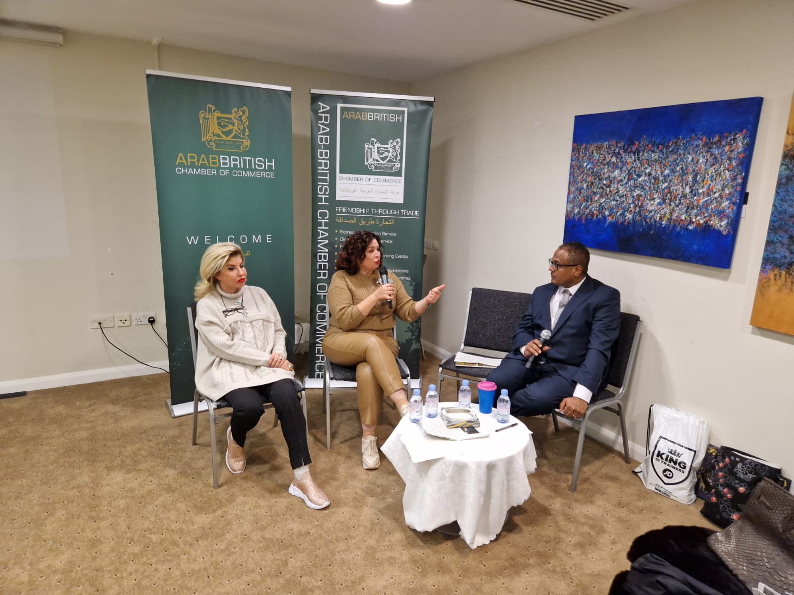 وتم حفل التكريم بالتعاون مع الغرفة العربية التجارية البريطانية والجمعية المصرية البريطانية التجارية في مقر الغرفه في مايفاير، لندن امس الجمعة بعد عرض فيلم الهام شاهين “حظر تجول” من إخراج أمير رمسيس.